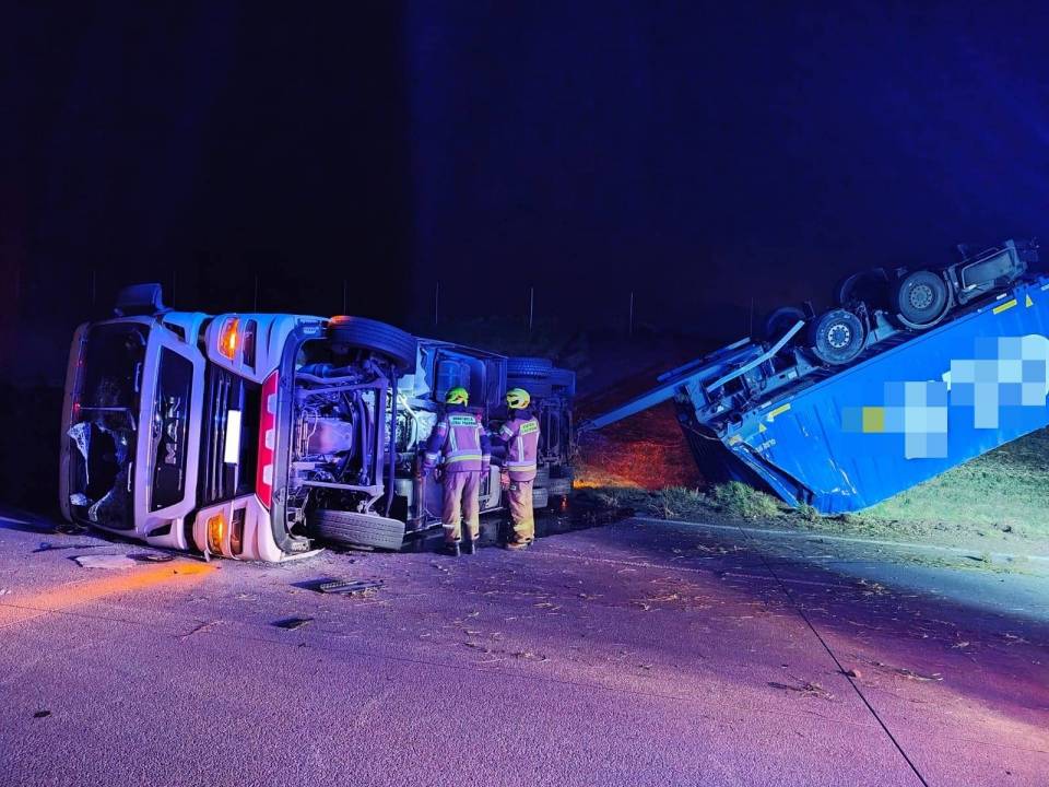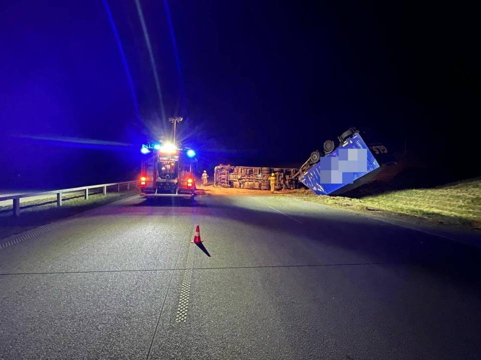 Do zdarzenia doszło kwadrans po godzinie 4.00 nad ranem. Według wstępnych informacji, pojazd przewrócił się częściowo na trasę, a przyczepa wpadła na pas zieleni. Jak przekazuje st. kpt. Marek Jeziorski z KP PSP Radomsko, kierowcy opuścili pojazd o własnych siłach jeszcze przed przybyciem służb ratunkowych i nie zgłaszali dolegliwości, w związku z czym nie wymagali pomocy medycznej.