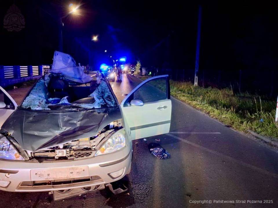Zgłoszenie o wypadku na ulicy Reymonta wpłynęło do służb tuż przed godziną 19. Na miejsce skierowano policję, straż pożarną i pogotowie. Ze wstępnych ustaleń wynika, że w trakcie jazdy fordem na jezdnię wybiegły dwa konie. Pojazd zderzył się z jednym ze zwierząt, co doprowadziło do poważnych uszkodzeń auta i obrażeń u kierowcy.