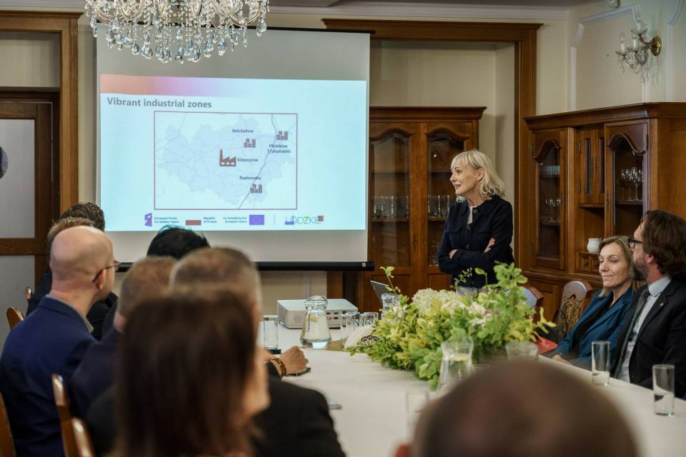 Spotkanie, które jest efektem rozmów podczas wystawy Expo w Osace, przygotował Departament Przedsiębiorczości i Sprawiedliwej Transformacji Urzędu Marszałkowskiego. W czasie prezentacji przygotowanej przez jego dyrektor Małgorzatę Misiak, zaprezentowany został m.in. plan sporządzenia bazy terenów inwestycyjnych obejmującej wszystkie 35 gmin wchodzące w skład obszaru transformacji w województwie łódzkim.