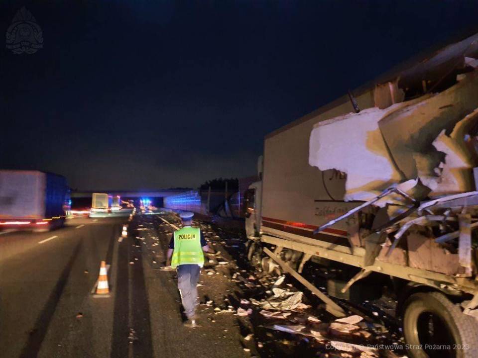 Zgłoszenie o kolizji i plamie substancji rozlanej na A1 wpłynęło do stanowiska kierowania radomszczańskiej straży pożarnej po godzinie 5.00. Do zdarzenia doszło przed węzłem Radomsko, na nitce w kierunku Łodzi.