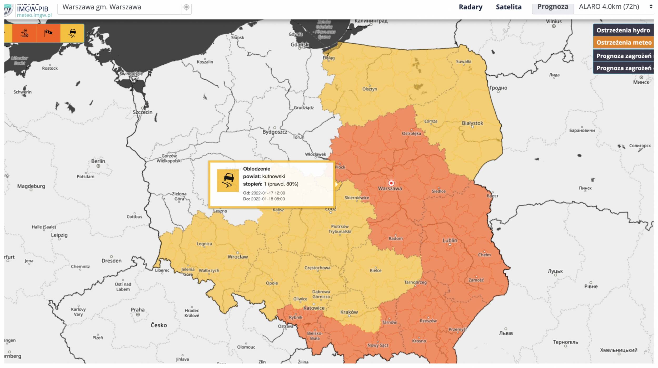 Po godzinie 15.00 IMGW podało, że front, który narobił niemało spustoszeń w całym kraju jest już na krańcach południowych, a burze w nim również osłabły. Według prognoz synoptyków silny wiatr jeszcze będzie nam towarzyszył, ale powoli będzie słabł. Na tym jednak nie koniec atmosferycznych "niespodzianek", bo to co spadło w ciągu dnia, niestety... zamarznie. W tej chwili dla przeważającej części kraju wydano więxc kolejne alerty - I stopnia, przed oblodzeniem.
