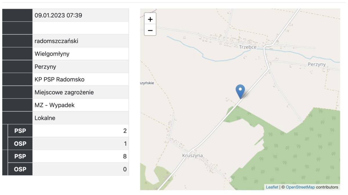 Do wypadku doszło w poniedziałek, 9 stycznia. O godzinie 7.39 służby zostały zadysponowane na lokalną drogę w miejscowości Perzyny w gminie Wielgomłyny.
