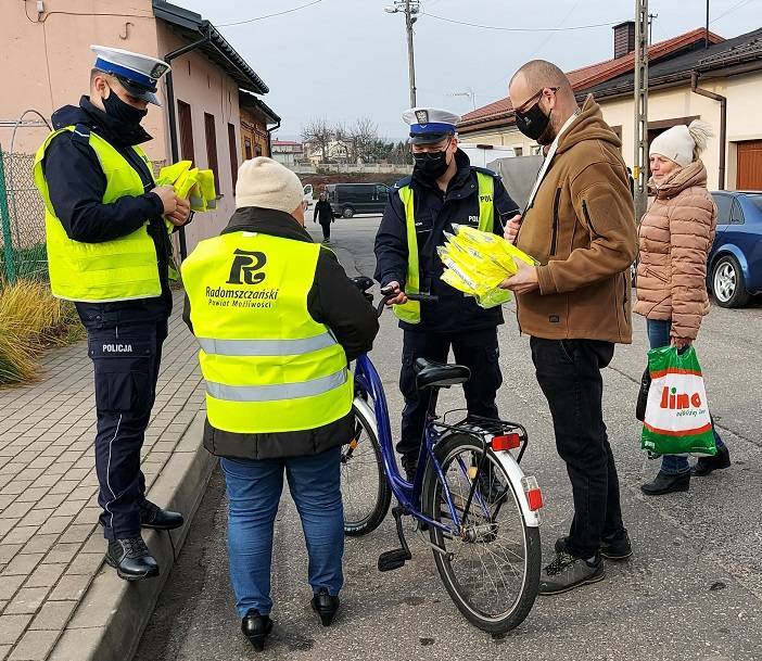 - Tym razem w działania włączyło się Starostwo Powiatowe w Radomsku, które ufundowało kamizelki odblaskowe. Mundurowi w dniach 16 – 18 listopada 2021 roku na placach targowych w Przedborzu, Kamieńsku i Radomsku rozdawali „niechronionym" elementy odblaskowe. W czwartkowych działaniach uczestniczyła Wicestarosta Powiatu Radomszczańskiego - Pani Małgorzata Lewandowska oraz I Zastępca Komendanta Powiatowego Policji w Radomsku - podinsp. Radosław Malanowski - informuje Aneta Wlazłowska z KPP Radomsko.