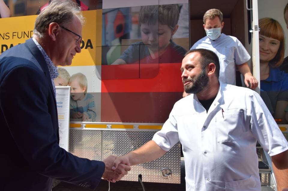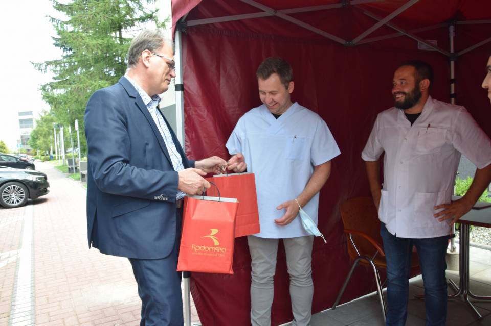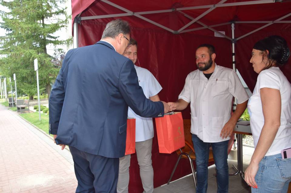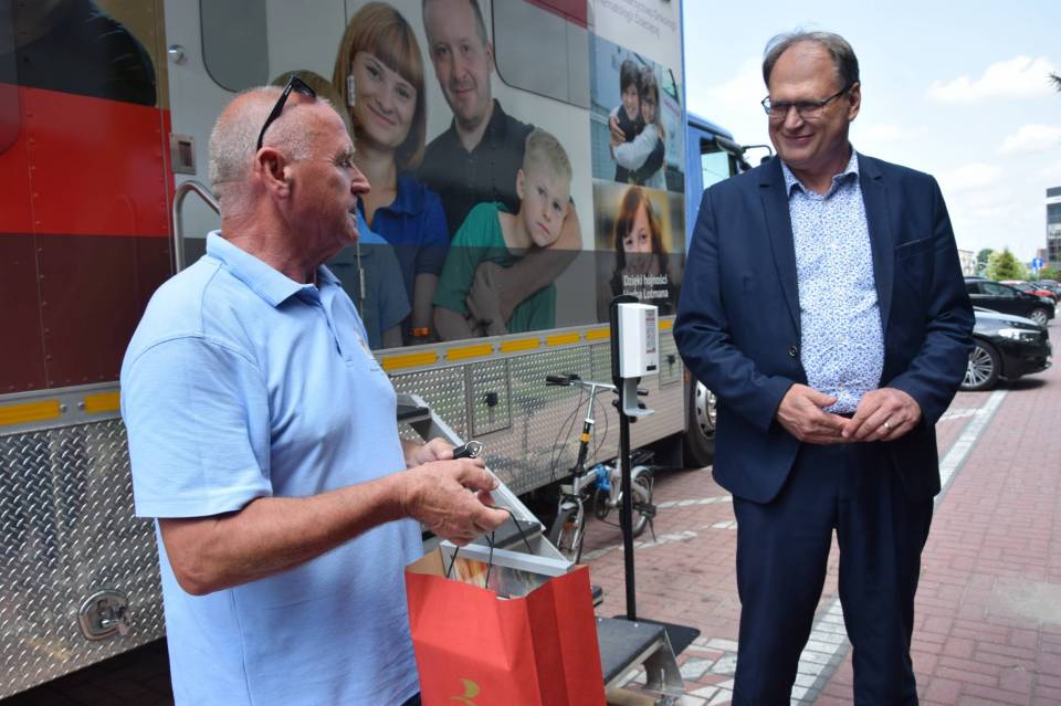 W czasie przerwy zespół ambulansu odwiedził prezydent Jarosław Ferenc, żeby podziękować za zaangażowanie w profilaktykę onkologiczną dzieci i wręczyć drobne upominki od urzędu miasta.