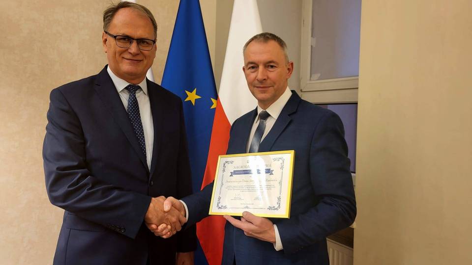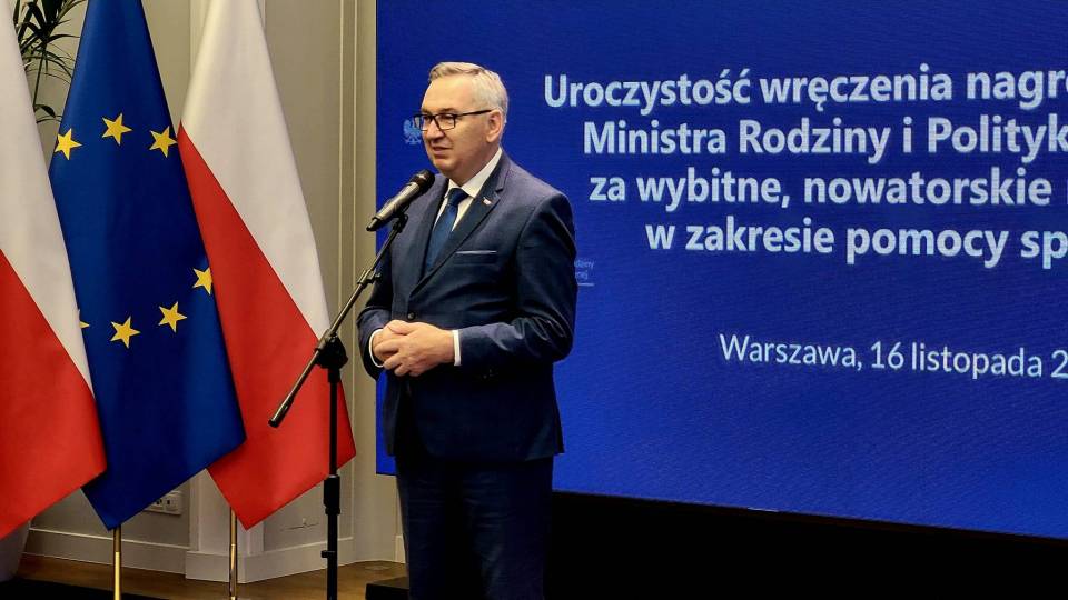 Nagrodę z rąk Minister Marleny Maląg odebrał dyrektor ŚDS Zbigniew Piechowicz, któremu towarzyszył Prezydent Miasta Radomska Jarosław Ferenc.