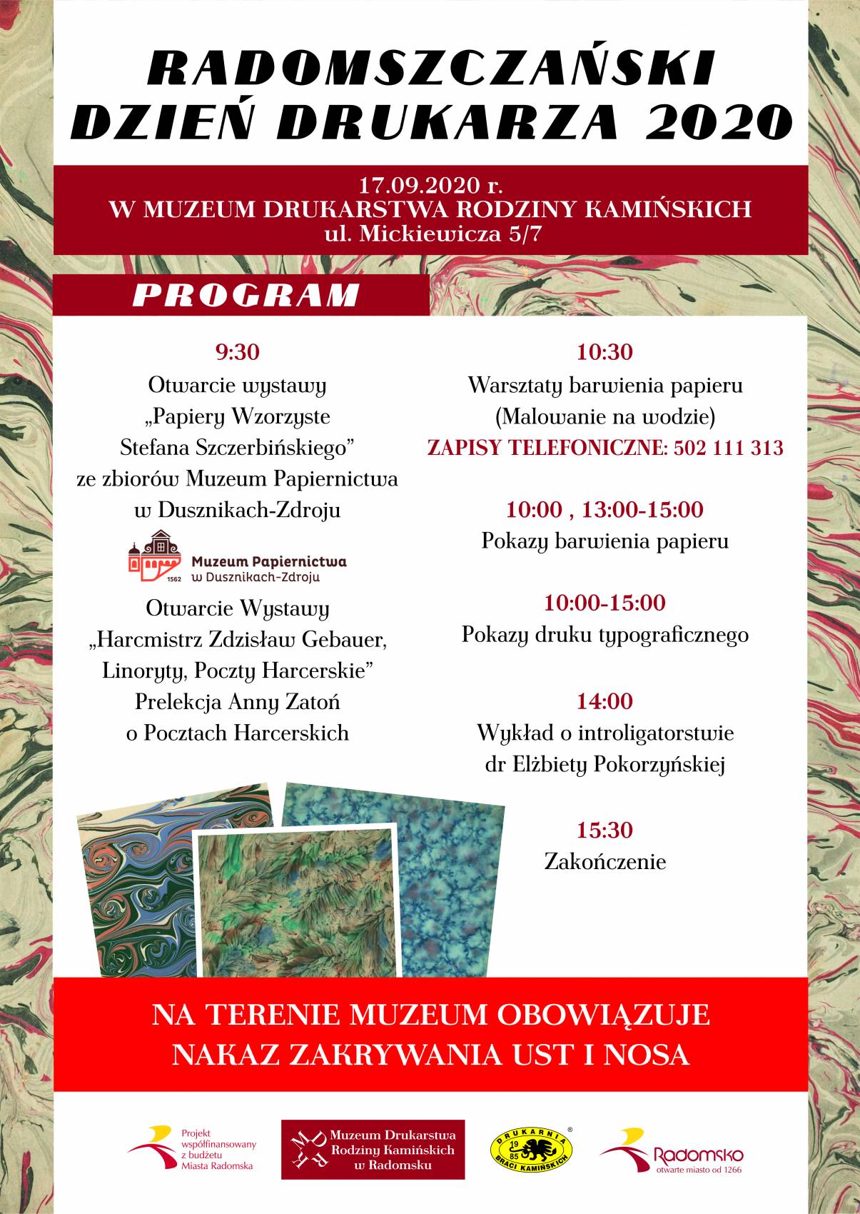 10:00, 13:00-15:00 - Pokazy barwienia papieru (malowanie na wodzie)